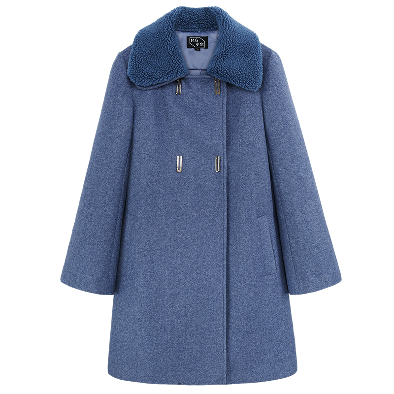 【直降100元】【98元雙11清倉】MG小象復古中長款藍色毛呢外套