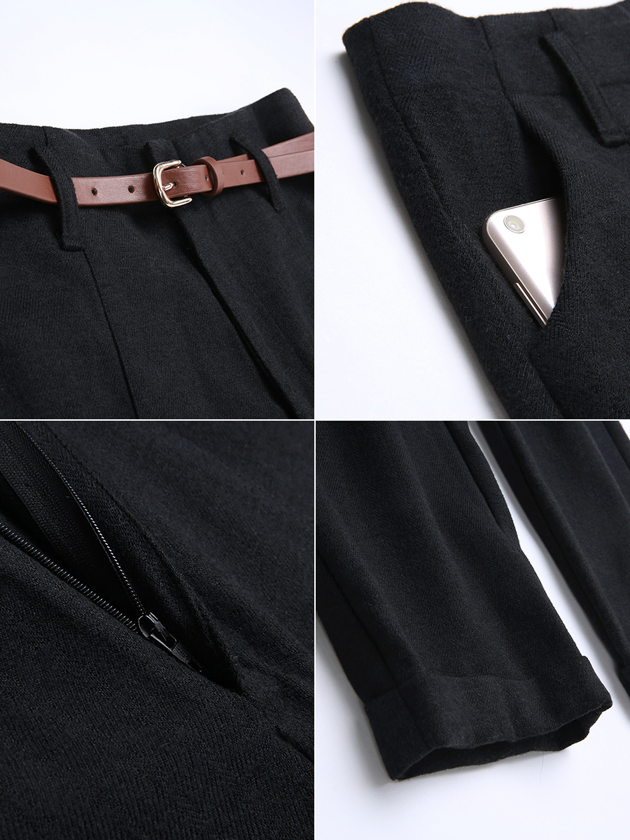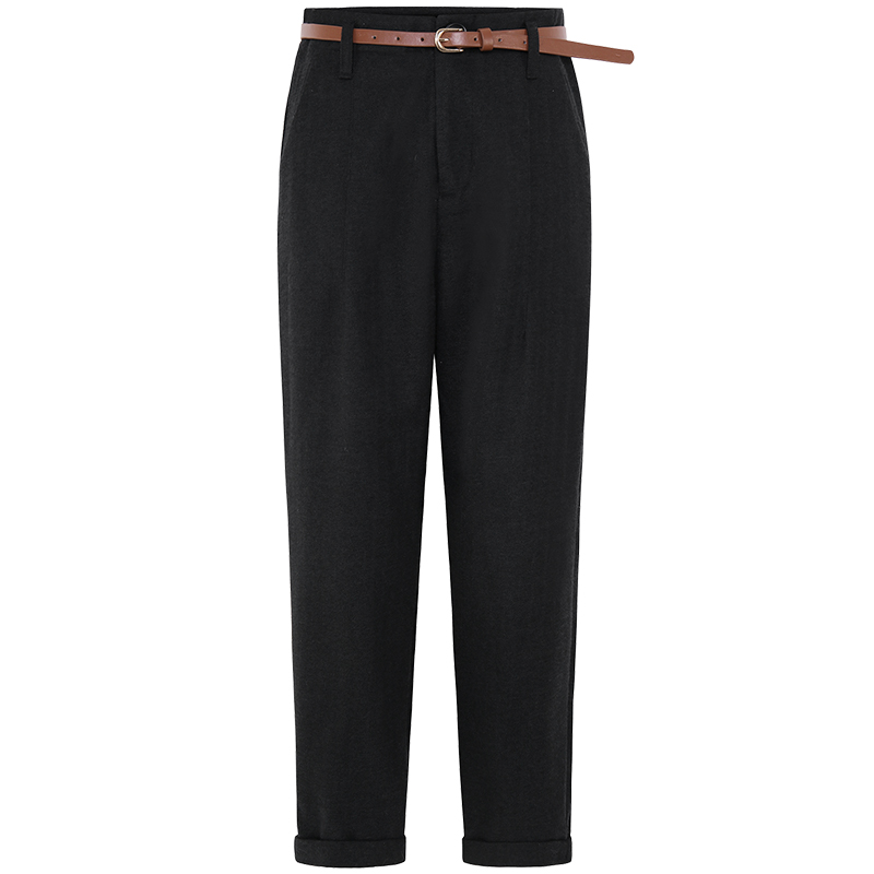 MG小象黑色高腰休閑褲女秋冬新款寬松韓版直筒褲學生ulzzang褲子