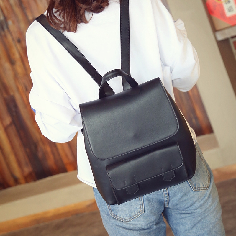 / 新款雙肩包女日韓潮流簡約時尚背包PU休閑旅行包包學院風書包