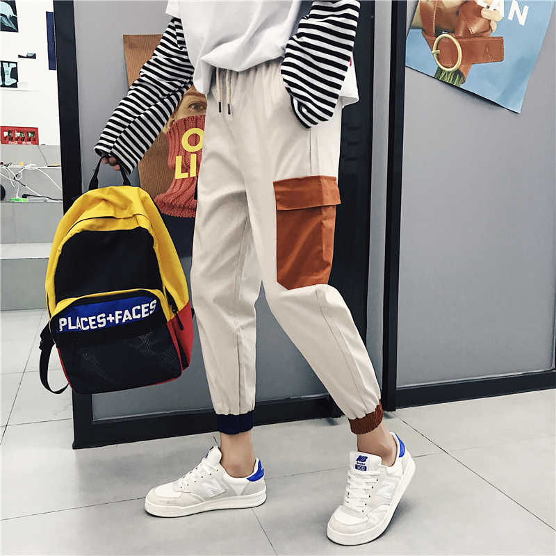 / 新款褲子男韓版潮流九分褲秋季休閑褲哈倫褲小腳褲男褲撞色束腳褲