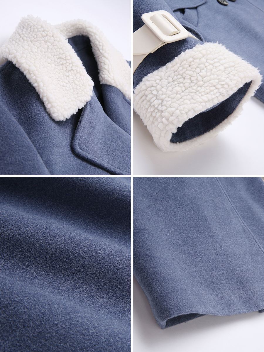 MG小象復古毛呢外套女冬季新款中長款寬松羊羔毛拼接學生呢子大衣