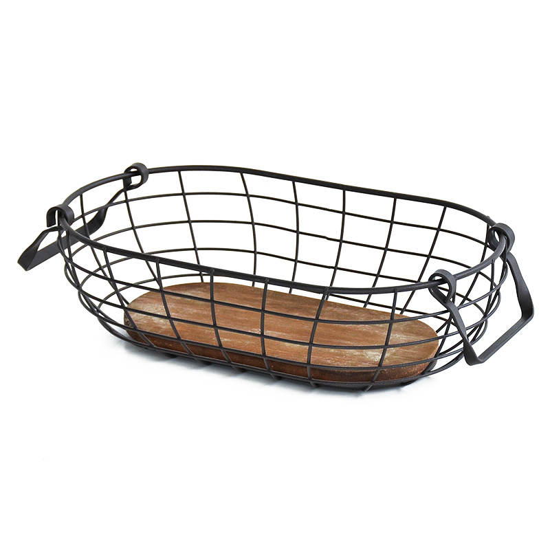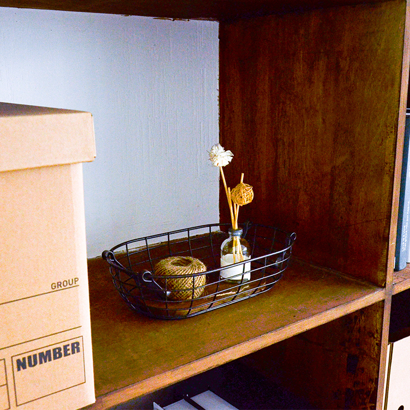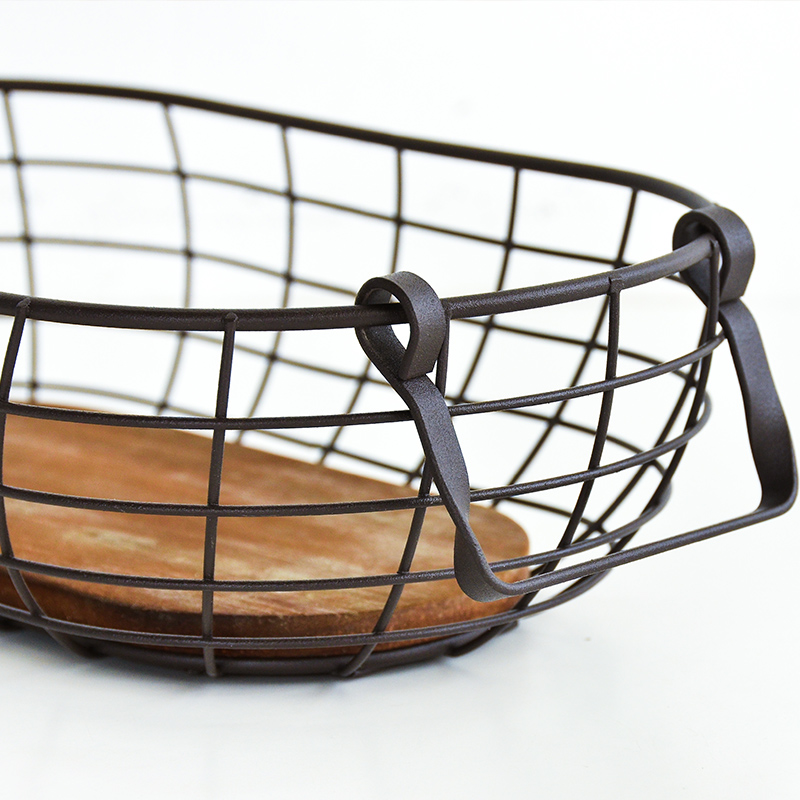 zakka雜貨實木底收納籃桌面鐵藝置物籃創意鐵制收納筐