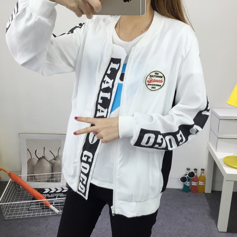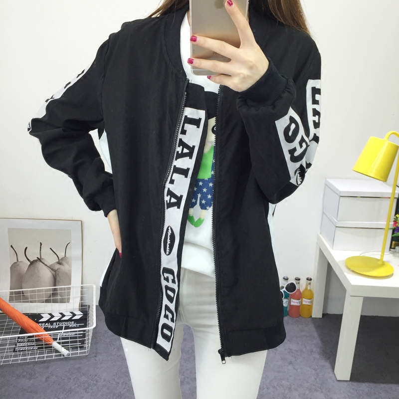/ 2016春裝韓版原宿風拼接字母風衣外套女bf寬松薄款學生情侶棒球女