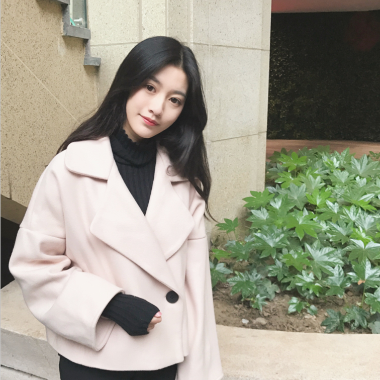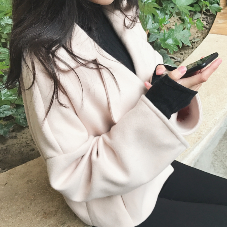 冬款加絨的毛呢,面料手感溫潤,厚度是御寒型的