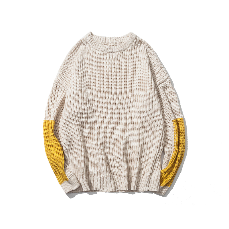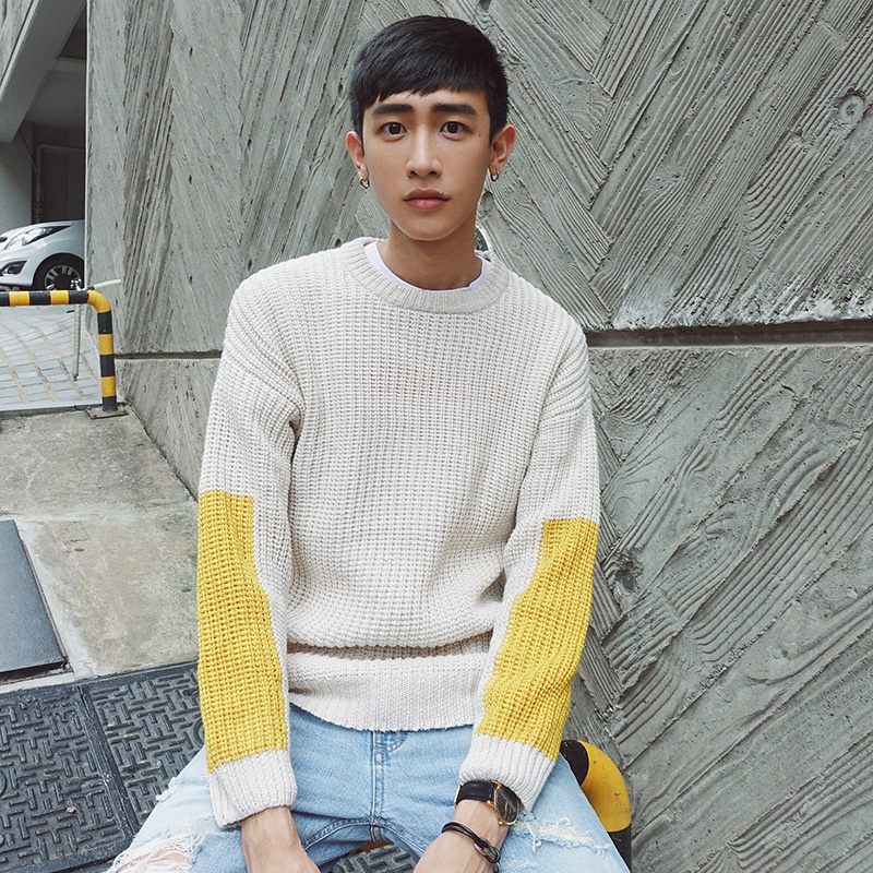 / 新款秋裝韓版男士拼色圓領寬松針織衫套頭毛衣外套