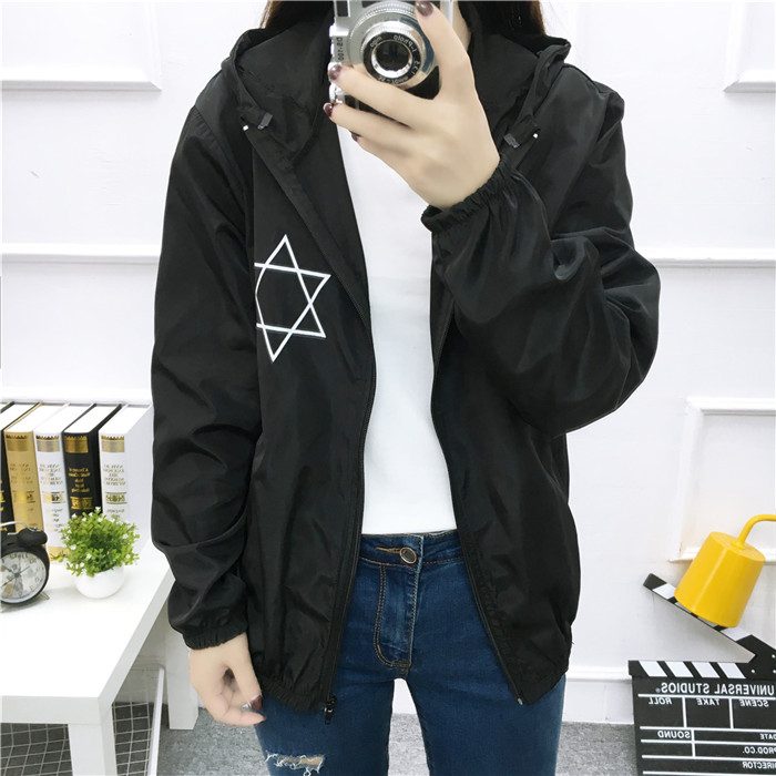 / 2017新款bf原宿風短款短外套女潮韓版學生班服字母印花連帽防曬衣