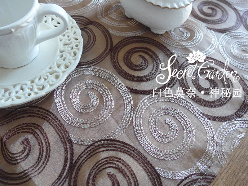 【包含】一件桌旗【質地】紗質【工藝】滿工繡花 長方型【尺寸】50*140長方形 【用法】作為桌旗使用,可以搭在家具如餐桌、邊柜上,用來墊各種擺設,杯盞,增加裝飾趣味,或防止家具沾染污漬,作為床旗,則在整理好床鋪后搭在床尾,既美觀又整潔~~