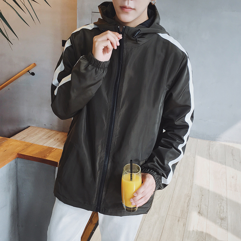 新品韓版春季新款撞色印花男士夾克連帽男外套