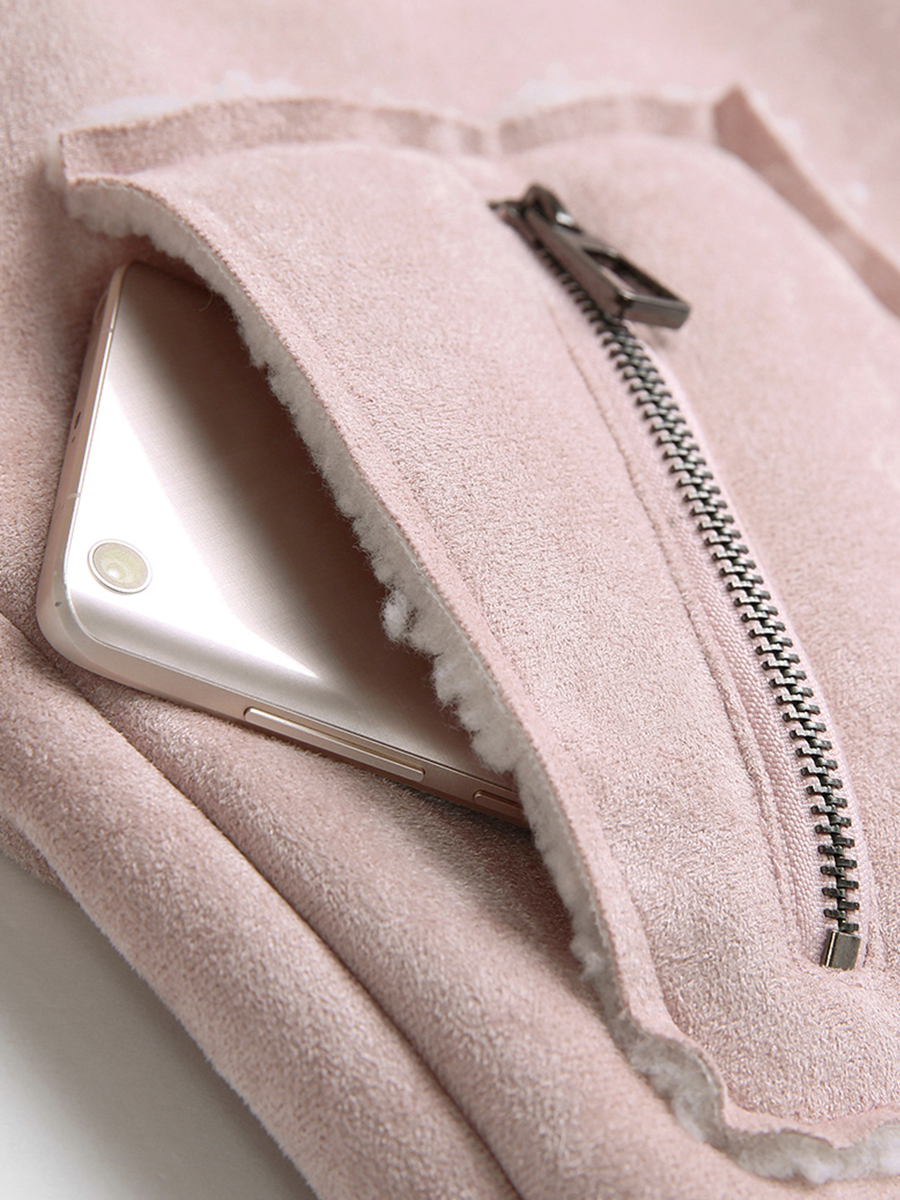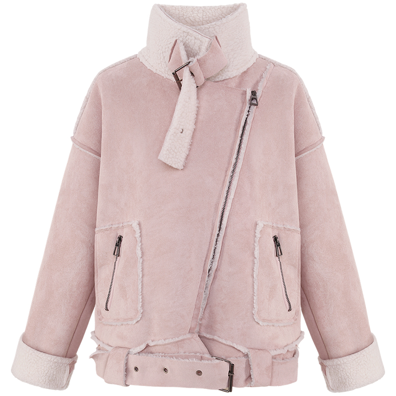 MG小象冬季毛呢外套女寬松學生2018新款粉色短款羊羔毛呢子大衣潮