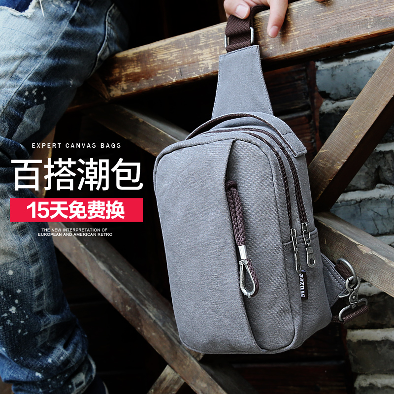 / 胸包男士韓版潮包斜挎包休閑帆布小包背包腰包單肩包男包包