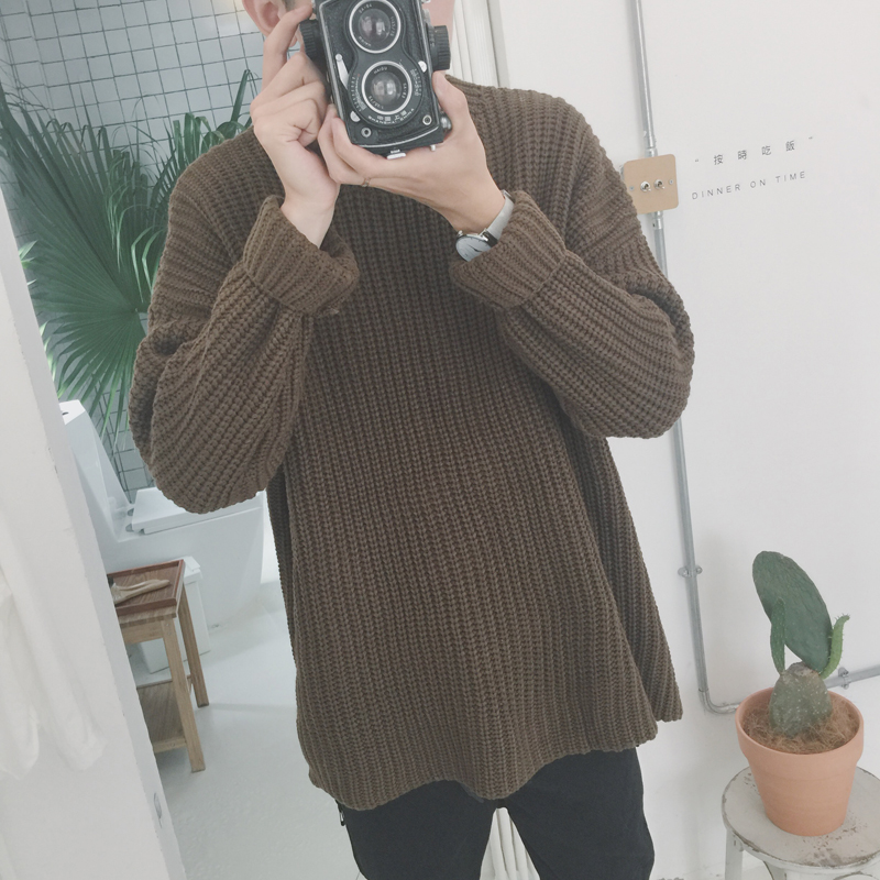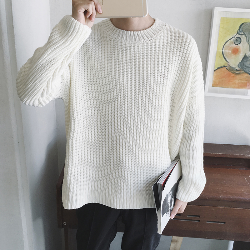 / 男裝新款韓版落肩圓領男士粗線毛衣寬松套頭針織衫