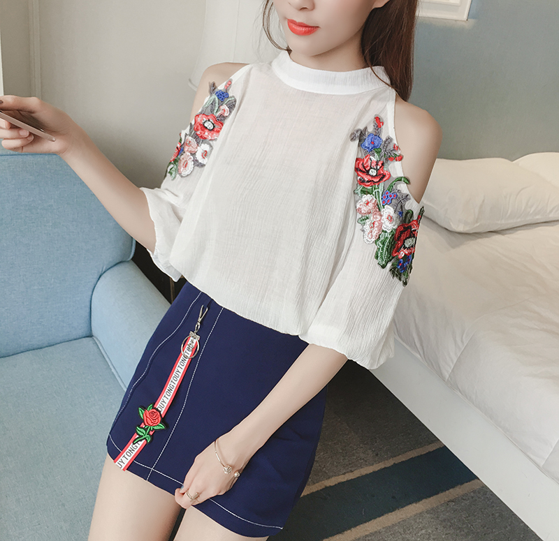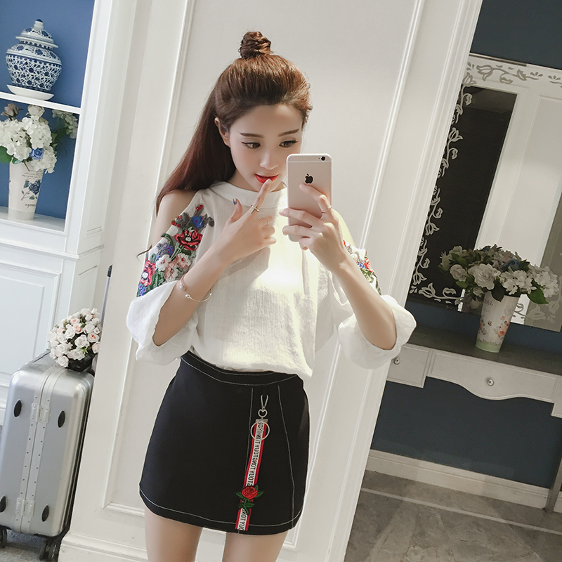 / 春夏新款女裝韓版時尚露肩雪紡衫兩件套女高腰半身短裙休閑套裝潮