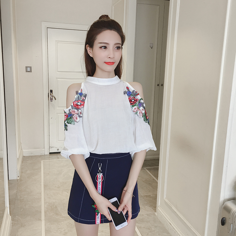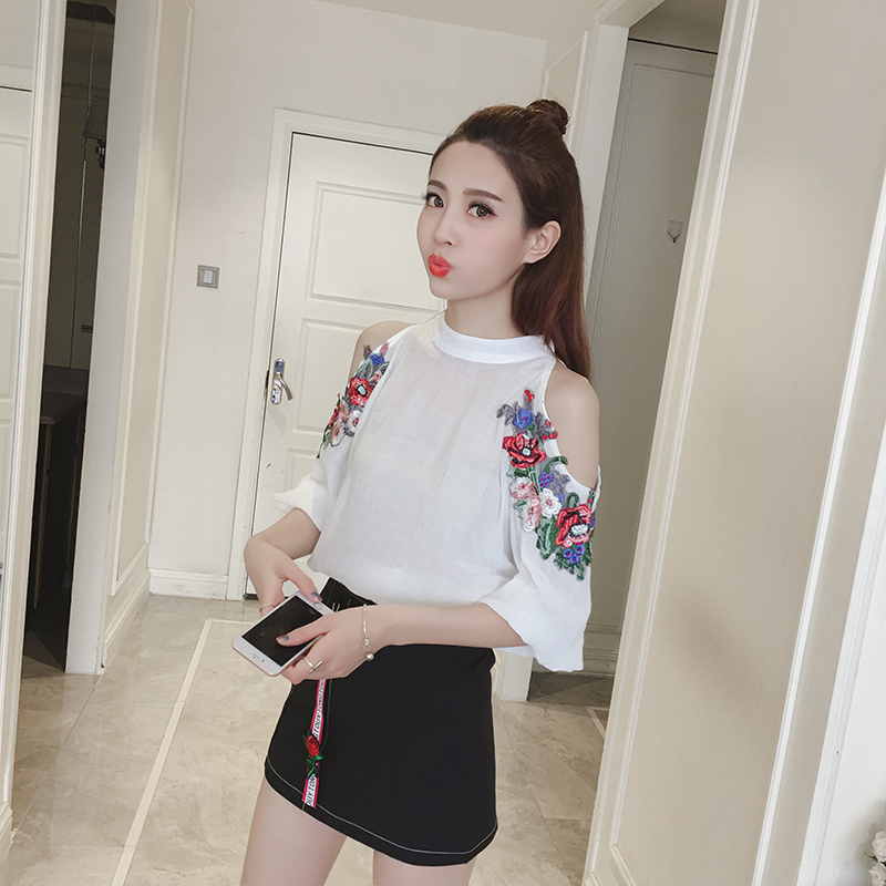 春夏新款女裝韓版時尚露肩雪紡衫兩件套女高腰半身短裙休閑套裝潮