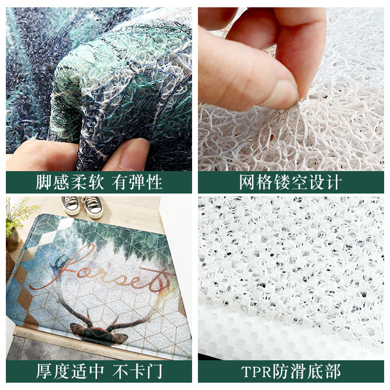 ins北歐環保PVC除塵入戶地墊 家用進門耐磨耐蹭絲圈鏤空防滑腳墊