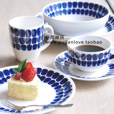 / 北歐風 芬蘭藍點餐盤8寸盤子 日式陶瓷餐具杯碟碗 西餐盤牛排盤子