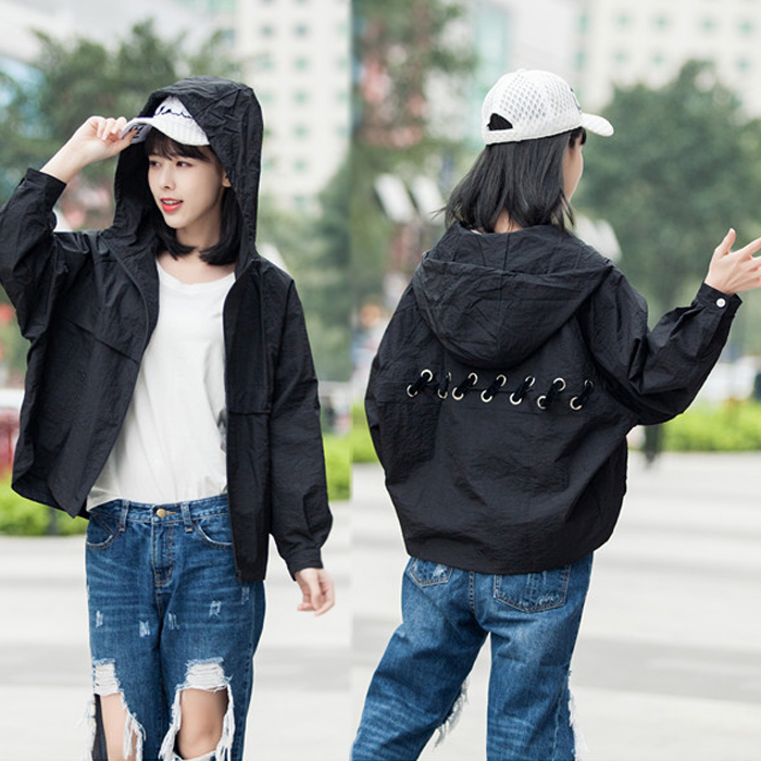 歐洲站2017春裝新款女裝拉鏈連帽短款純色風衣時尚休閑外套潮歐貨