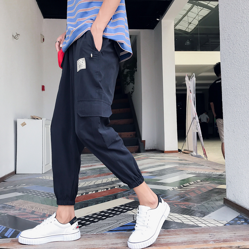 男士休閑褲秋季潮流寬松九分褲小腳褲港風男褲薄款9分褲修身掉檔