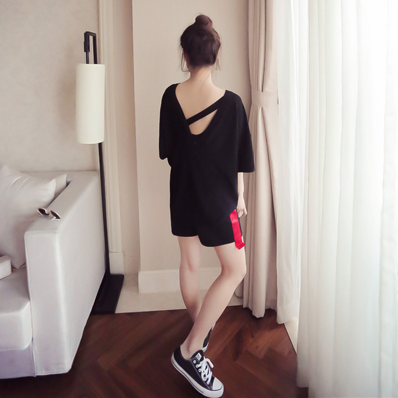 / 夜場女裝衣服2017春夏裝新款歐美風性感露背破洞短袖t恤夏天上衣