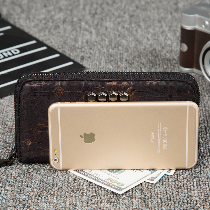 男士鉚釘長款錢包青年復古磨砂軟皮韓版休閑多卡位皮夾學生錢夾潮