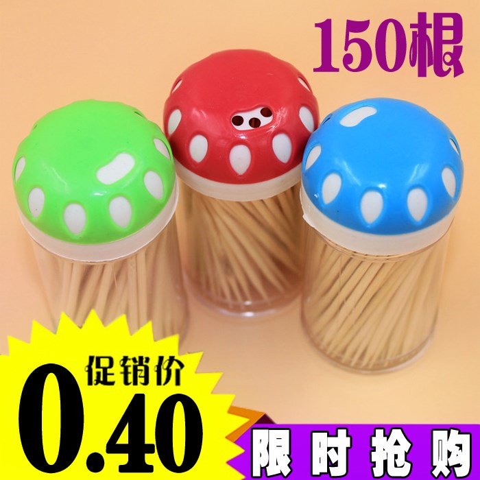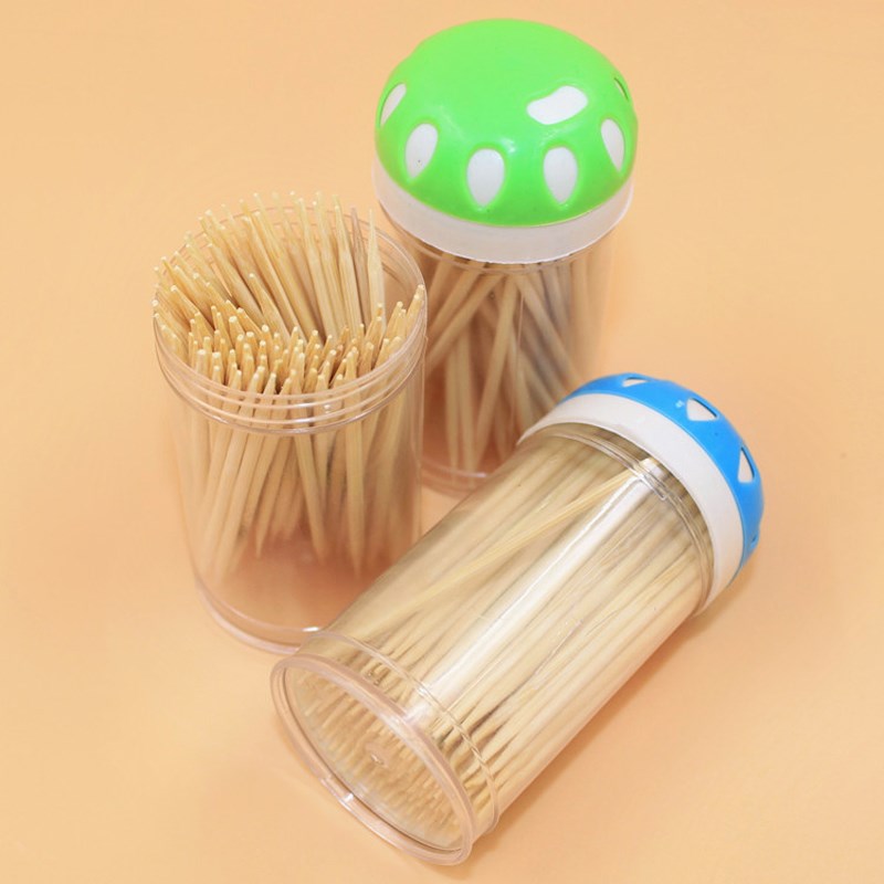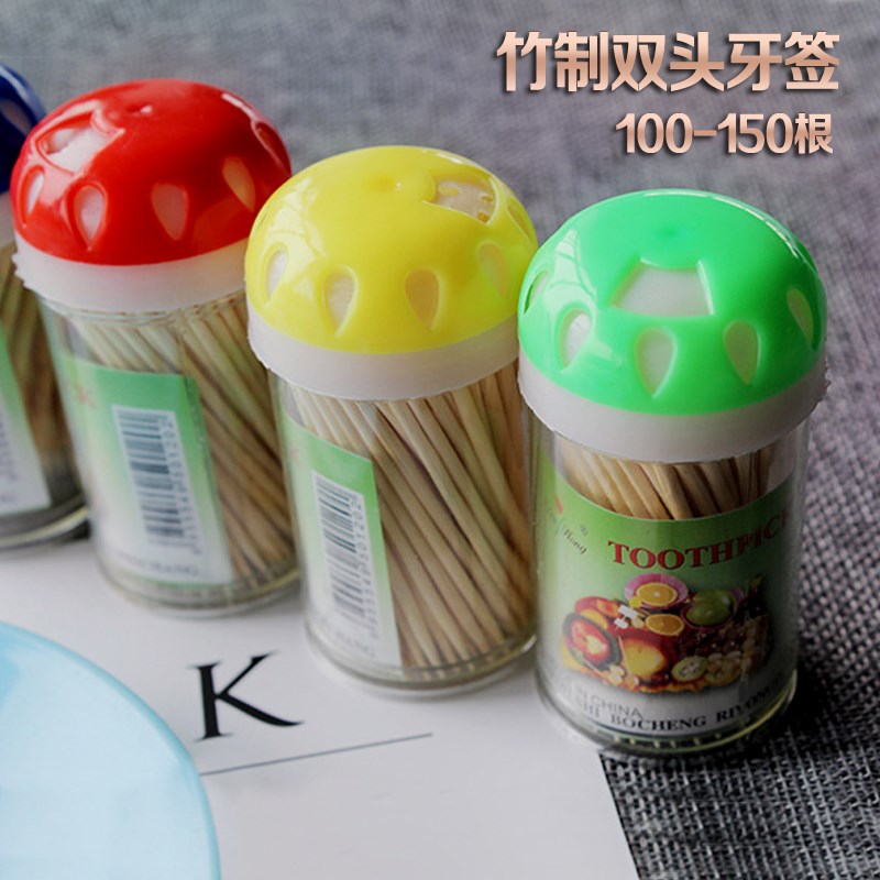 / 圓筒牙簽透明圓形竹制旅行隨身飯店酒店旋轉帶孔式雙頭廚房帶盒子