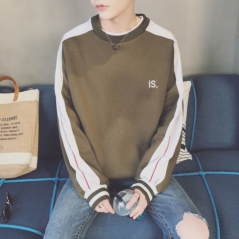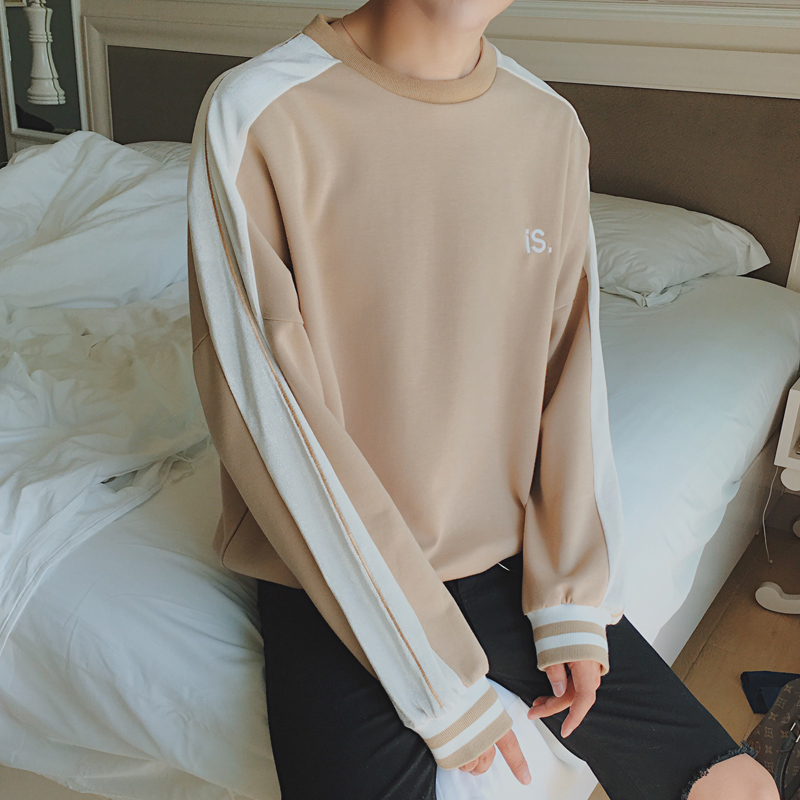 / 男裝拼色字母繡花韓版男士圓領寬松套頭衛衣運動衫