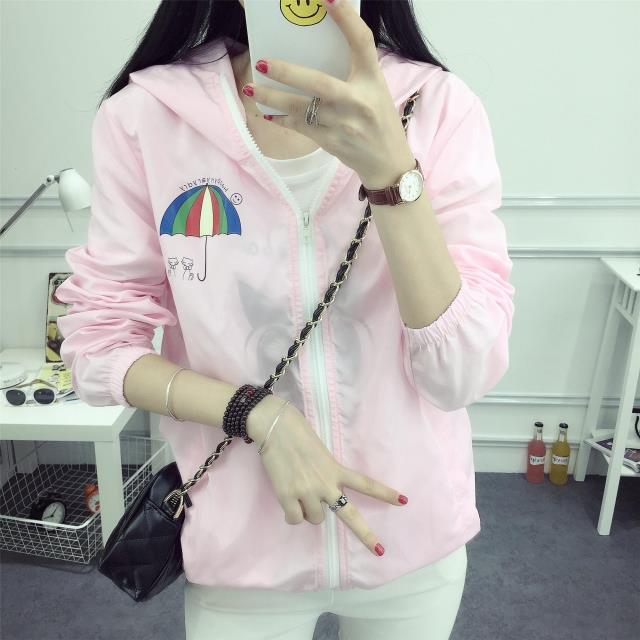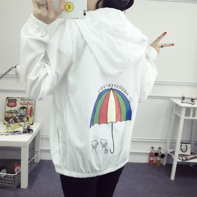 / 新款少女春夏印花衣服薄款防曬衫寬松連帽中長款外套初中高中學生