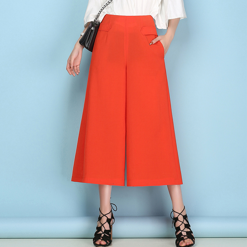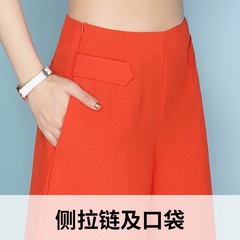 / a字顯瘦棉麻高腰七分闊腿褲春夏大碼寬松九分褲休閑褲寬腳甩腿褲