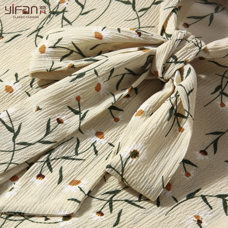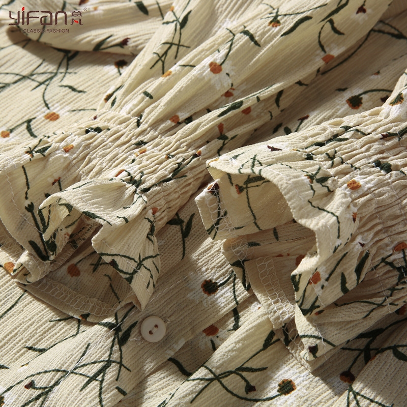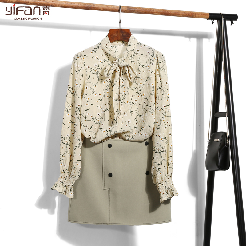 / 韓版春裝新款系帶蝴蝶結碎花雪紡襯衫女喇叭長袖寬松百搭襯衣