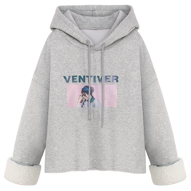 MG小象短款加絨衛衣女寬松長袖冬季2018新款學生保暖連帽套頭上衣