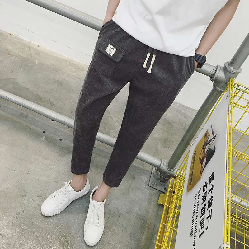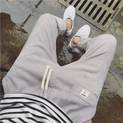 / 原創貼布圖案薄款燈芯絨男士九分男褲低襠跨褲