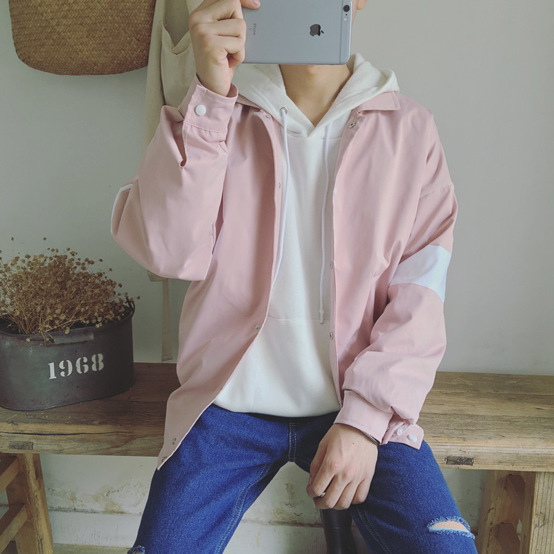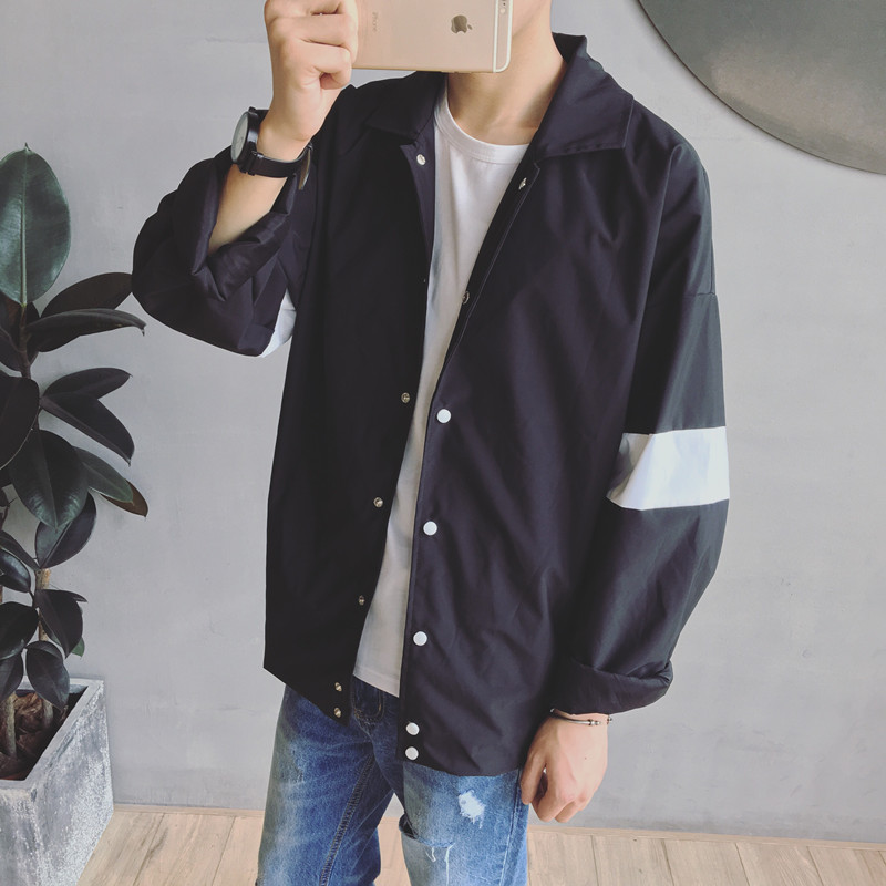 / 秋季新款后背織帶字母寬松版韓版男士短款夾克外套