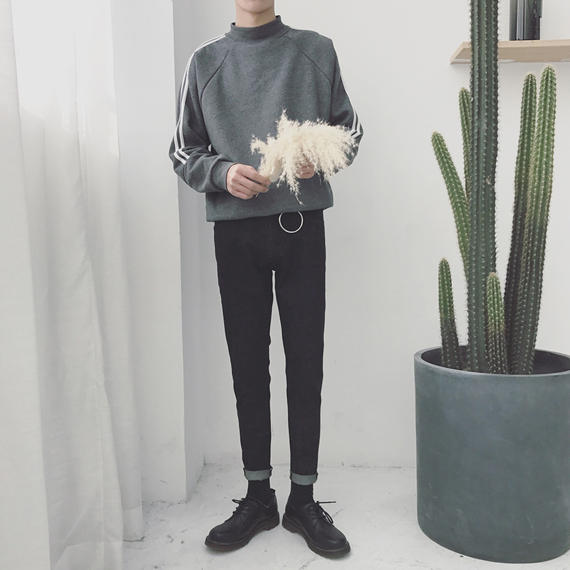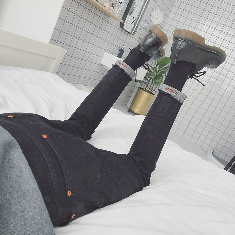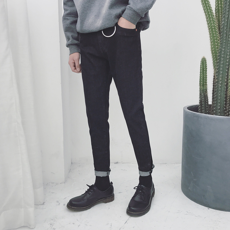 / 男裝復古鐵環修身小直腳字母錐形褲男士大碼牛仔褲