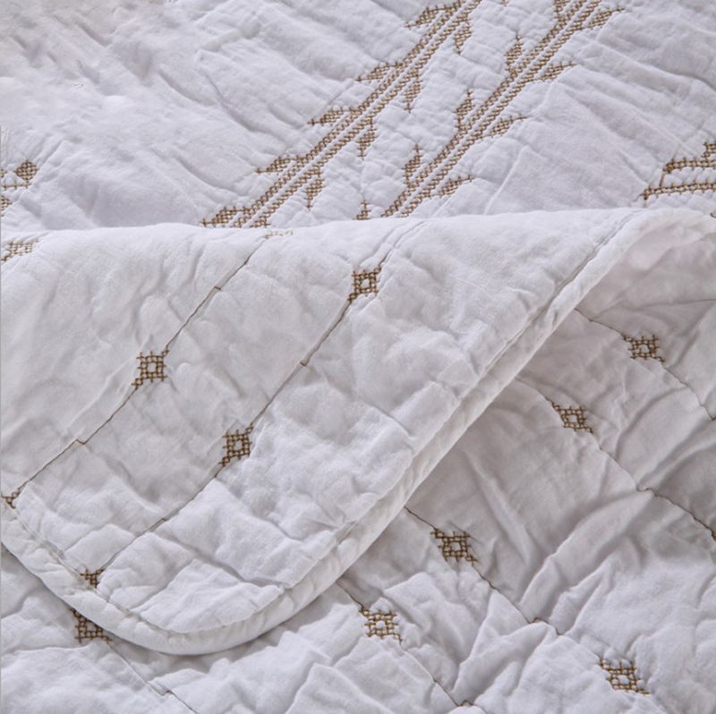 美美的十字繡工藝,床單、床蓋款式設計,橫鋪豎鋪都可以的圖案,高貴的品質,舒適的手感,時尚個性設計,多功能使用。精致電腦十字繡花絎縫設計,填充物為100%棉,柔軟、手感舒適,正反面均為高密度棉布(紗織密度32*32,66*66);