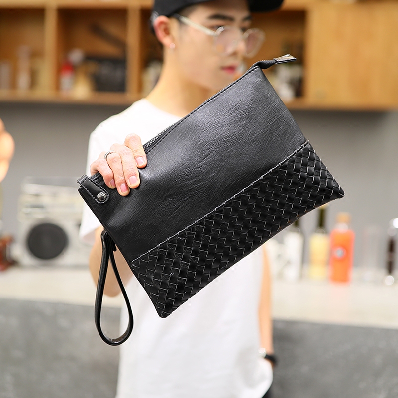 / 新款韓版復古手拿包編織拼接男女士手包ipad手拿包男式單肩