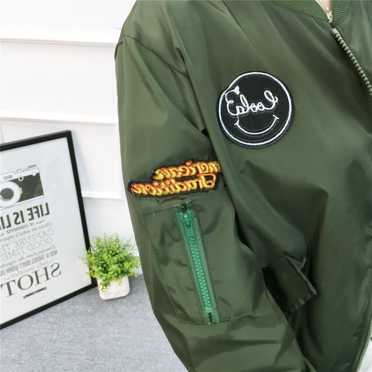 / 春季新款軍綠色休閑學生小外套女式短款棒球服春秋飛行員夾克衫