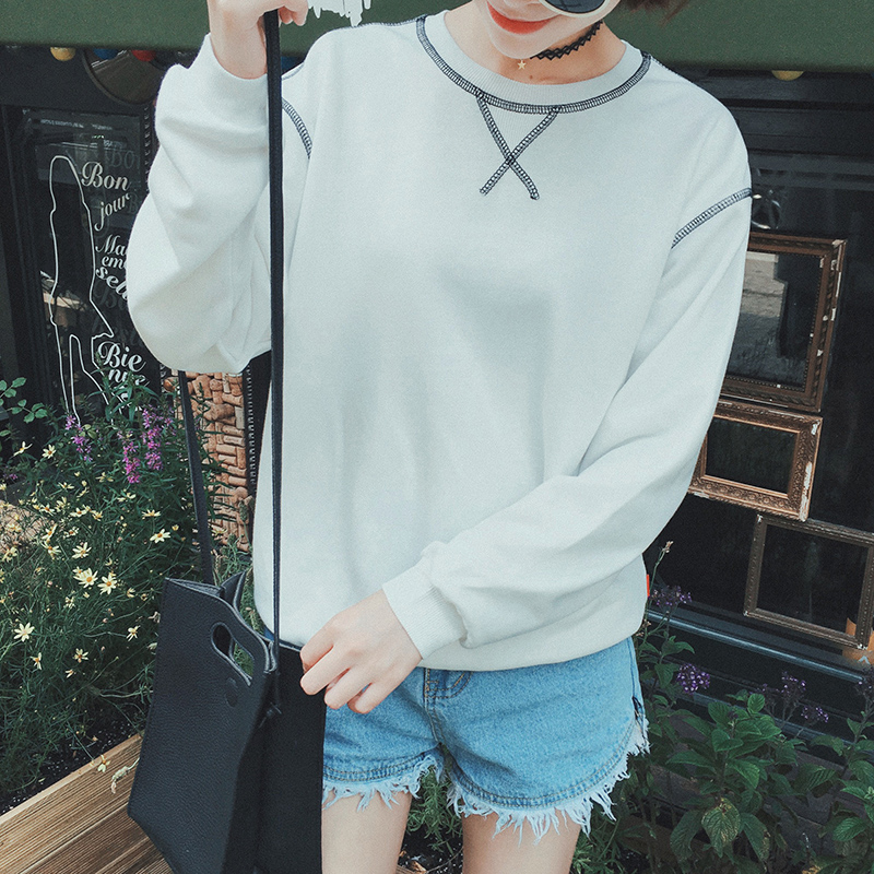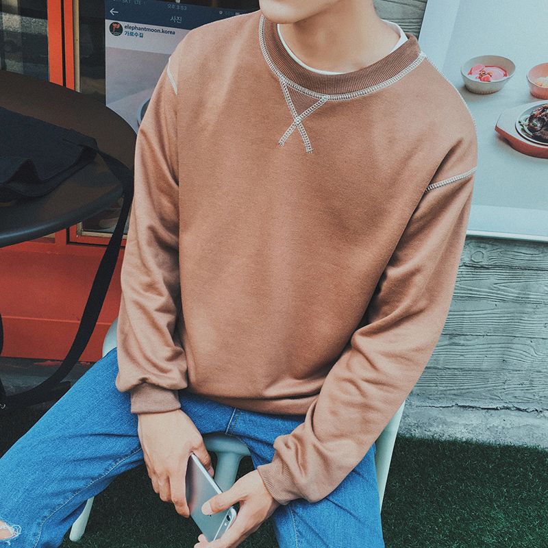 新款男裝韓版圓領情侶長袖小清新男士寬松衛衣外套
