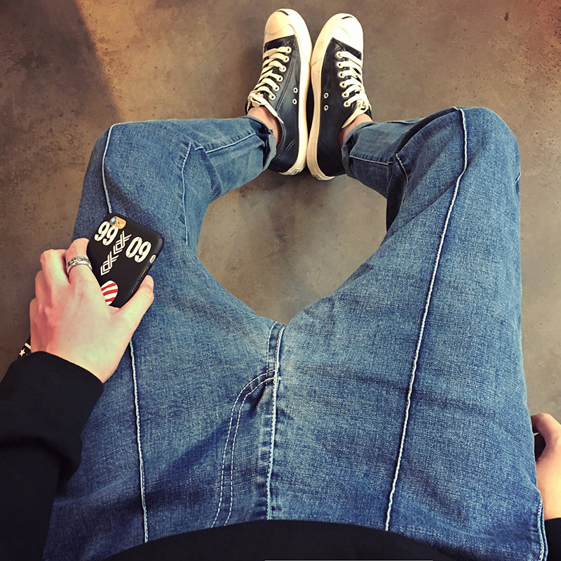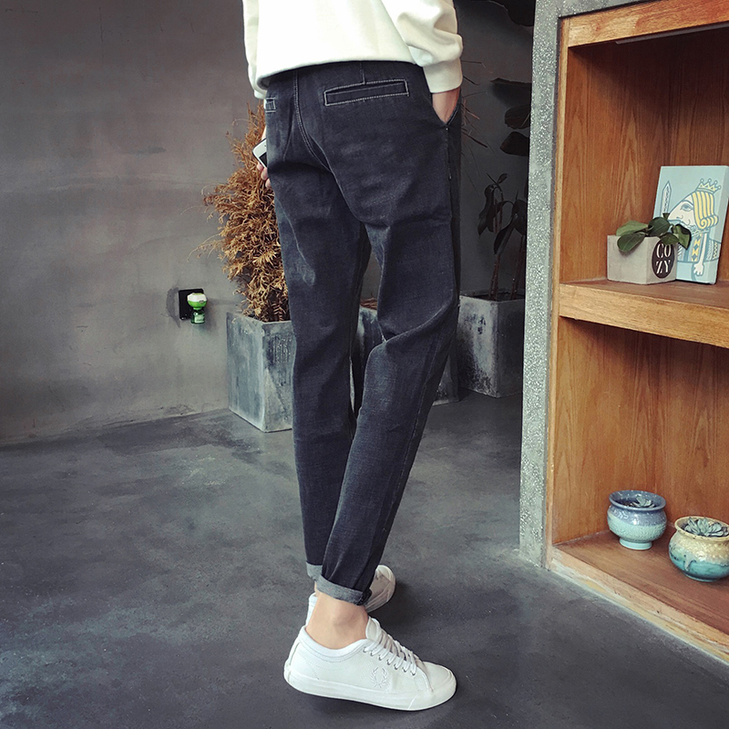 秋裝新款日系復古水洗韓版男士修身小腳男士牛仔褲