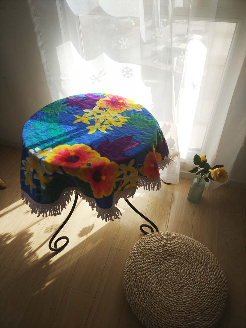 [白色莫奈] 兒童夏威夷風情撞色多功能純棉圓桌布割絨浴巾沙灘巾