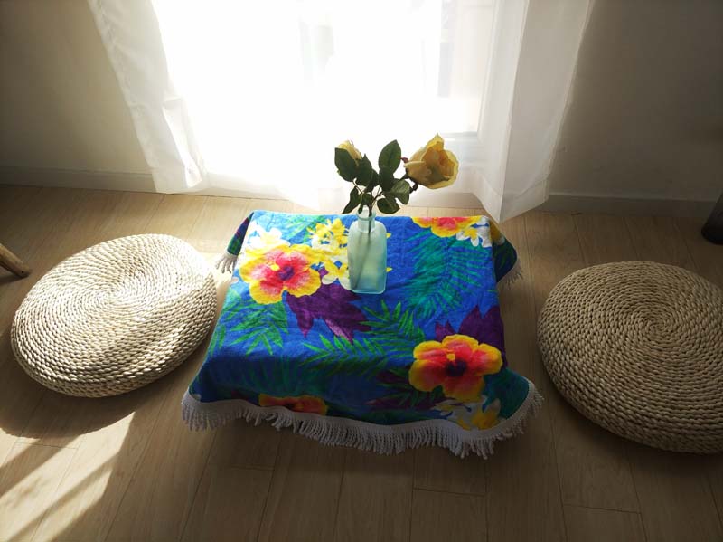 品名:兒童夏威夷風情撞色多功能純棉圓桌布割絨浴巾沙灘巾