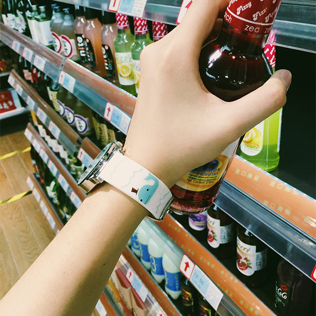 手表帶上的印刷是隨機的,位置有可能每只都不一樣,印刷稍有點模糊是正常的哦