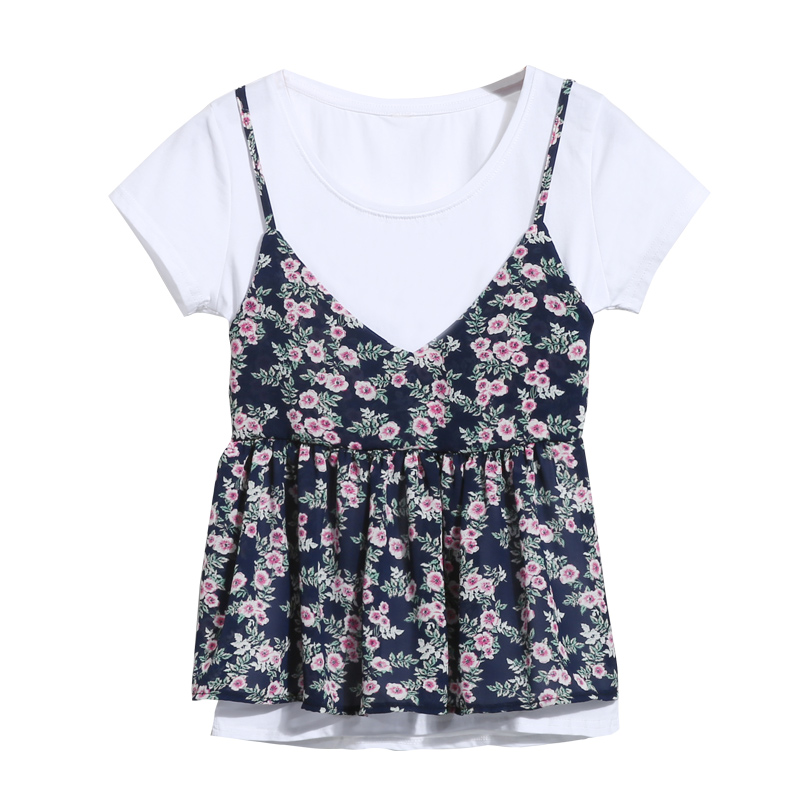 / 韓版新款夏季碎花V領吊帶背心學生百搭寬松甜美外穿花朵上衣