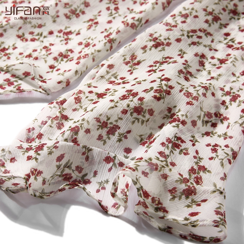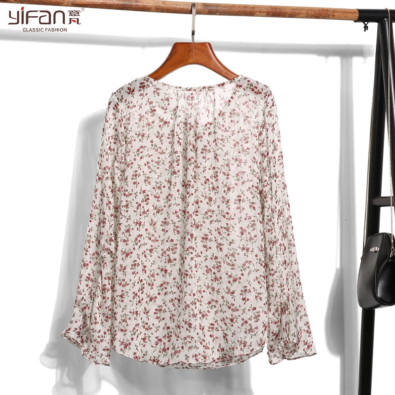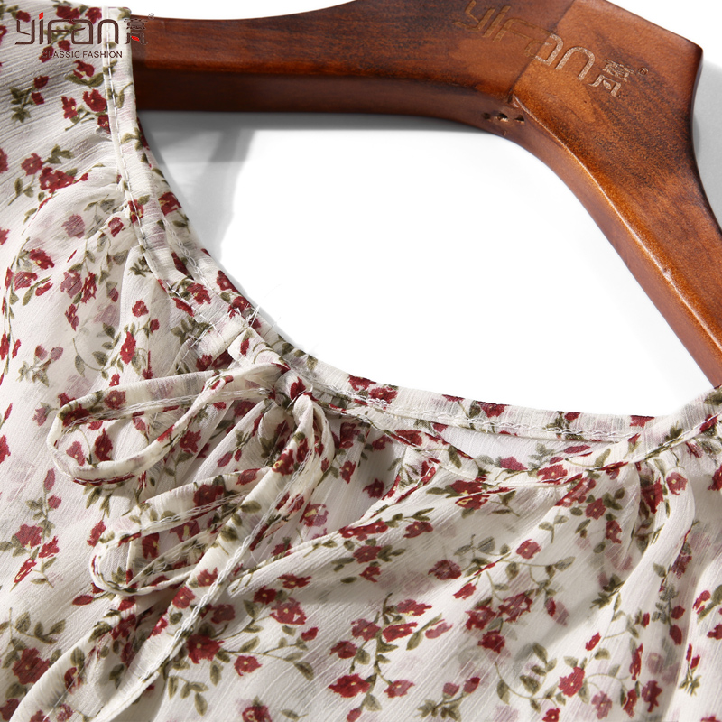 / 韓國新款瑞麗甜美寬松顯瘦綁帶雪紡上衣系帶喇叭袖碎花襯衫女長袖