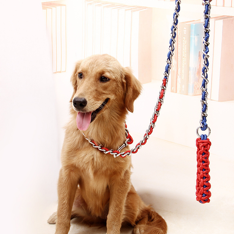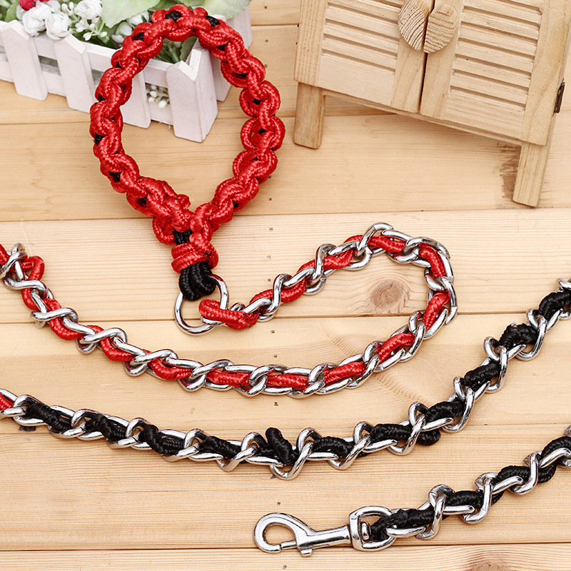 品名 :穿花鐵鏈牽引繩 四色可選 黑色 紅色 藍色 綠色