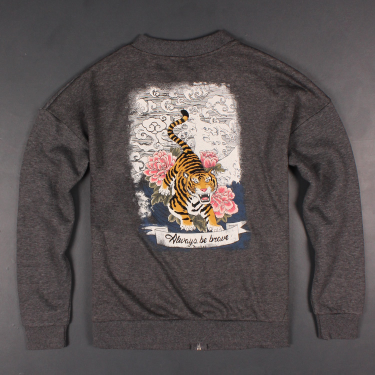 大氣猛虎祥云印花夾克 時尚棒球領設計 春秋薄絨帥氣男裝衛衣外套
