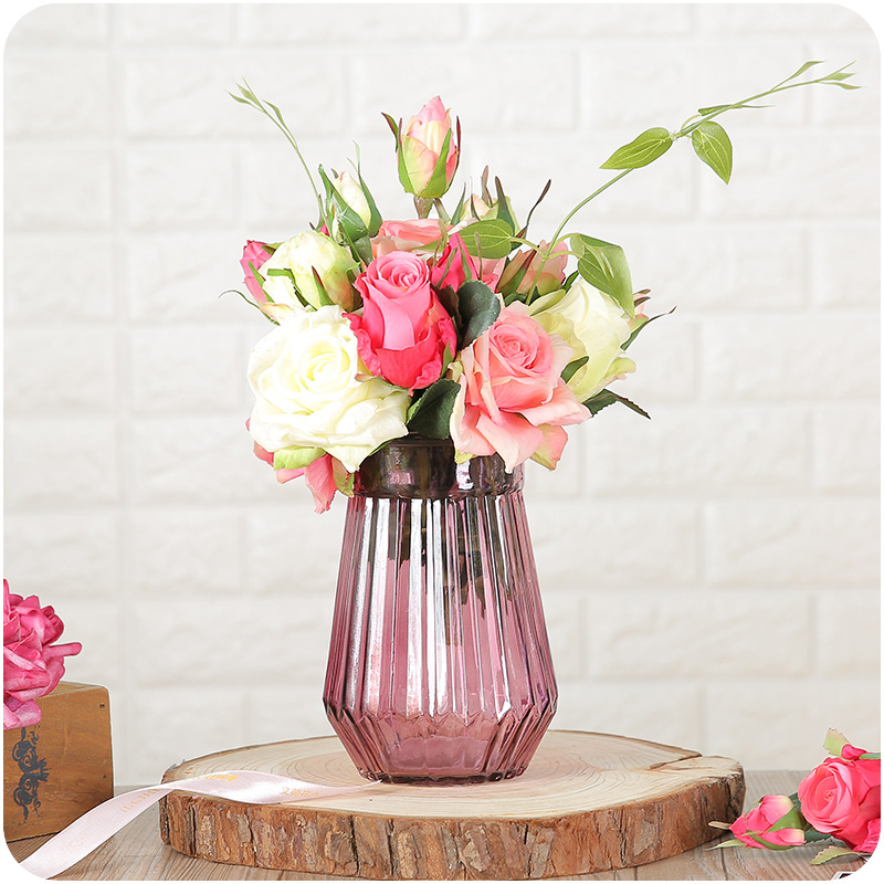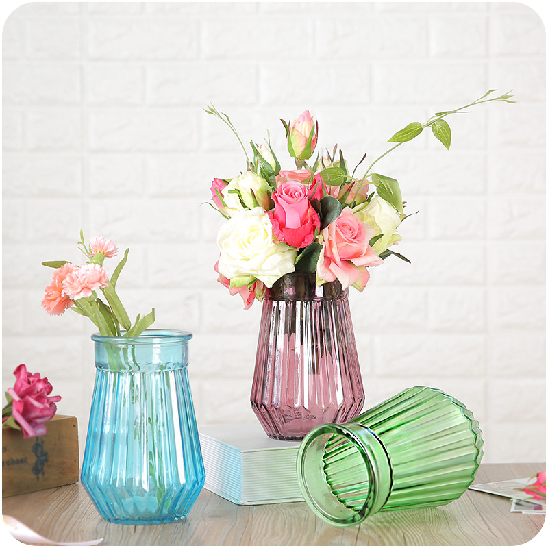 / 花瓶玻璃透明客廳插花干花瓶清新簡約歐式彩色綠植大口豎條紋花器