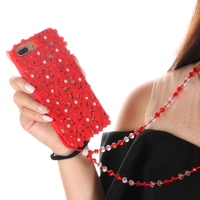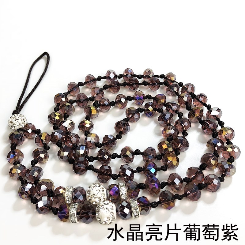 手機掛繩純手工編織手機鏈水晶掛繩掛脖繩子長鏈鑲鉆閃亮項鏈吊墜