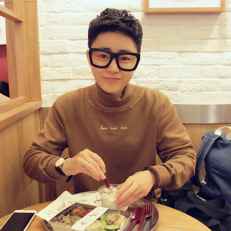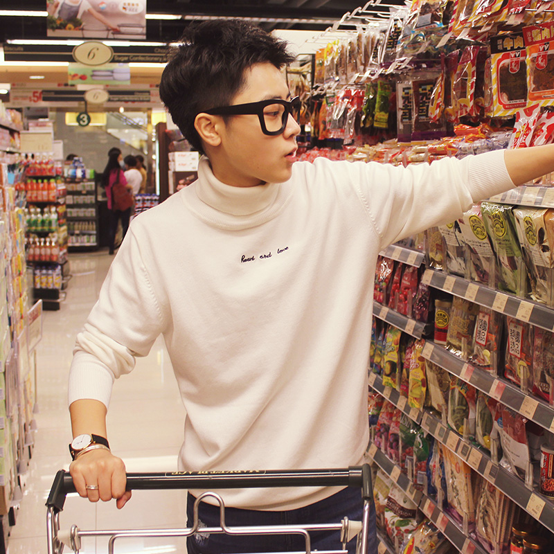 秋冬新款韓版高領字母刺繡男女情侶修身套頭毛衣