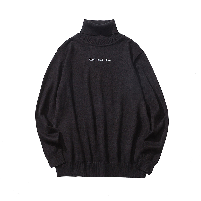 / 秋冬新款韓版高領字母刺繡男女情侶修身套頭毛衣
