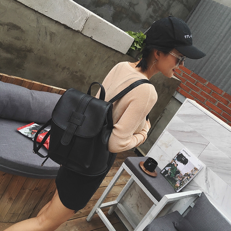 / 新款韓版雙肩包女潮流時尚背包簡約百搭休閑PU學院風學生書包