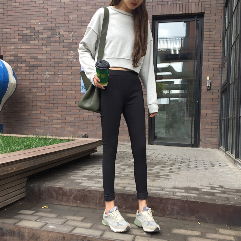 秋冬款韓版黑色加絨加厚打底褲長褲外穿修身高腰小腳休閑褲女